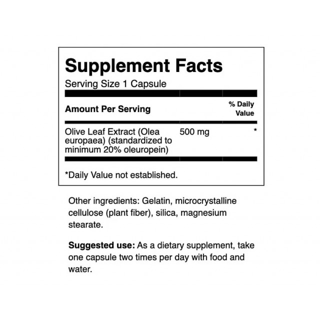 | Состав: | Экстракт листьев оливы (Olea europaea) (стандартиз. до 20% олеуропеин) Состав 1 капсулы: 500 мг Другие ингредиенты: желатин, микрокристаллическая целлюлоза (растительное волокно), диоксид кремния, стеарат магния. |