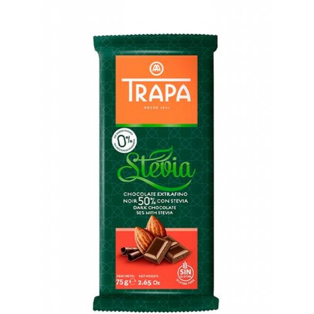 Изготовленный на испанской фабрике со 125-летними традициями, шоколад Trapa изготовлен по традиционному, тщательно защищенному рецепту, с той разницей, что избыток сахара был исключен и заменен сладостью из южноамериканских листьев стевии. Благодаря этому шоколадные конфеты Trapa гораздо менее калорийны, чем обычный шоколад, и содержат гораздо меньше углеводов. Шоколад, подслащенный стевией, подходит для диабетиков. Производство Trapa – это безглютеновая шоколадная фабрика – шоколад имеет испанский сертификат, подтверждающий, что он пригоден для людей, придерживающихся безглютеновой диеты, включая больных целиакией.